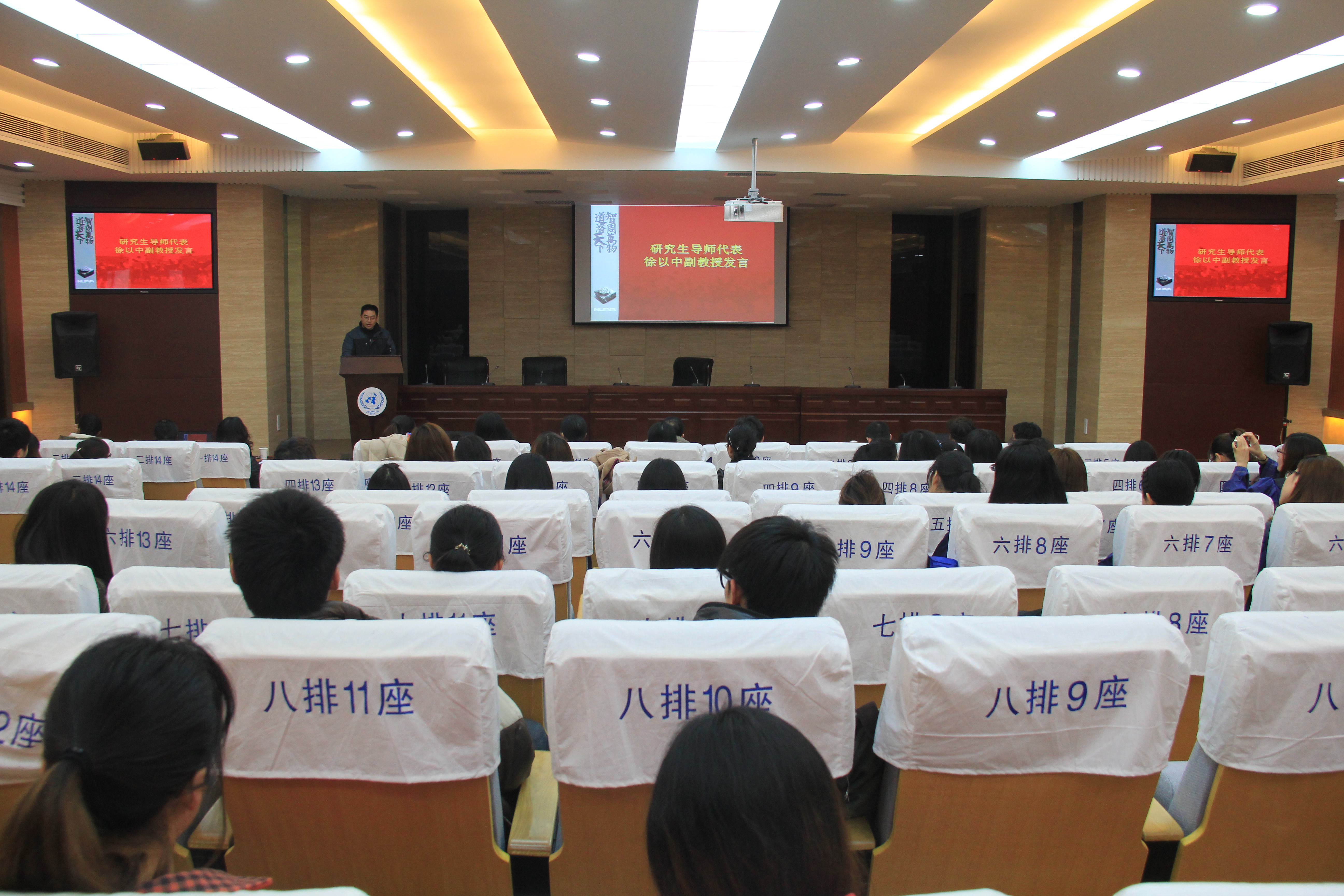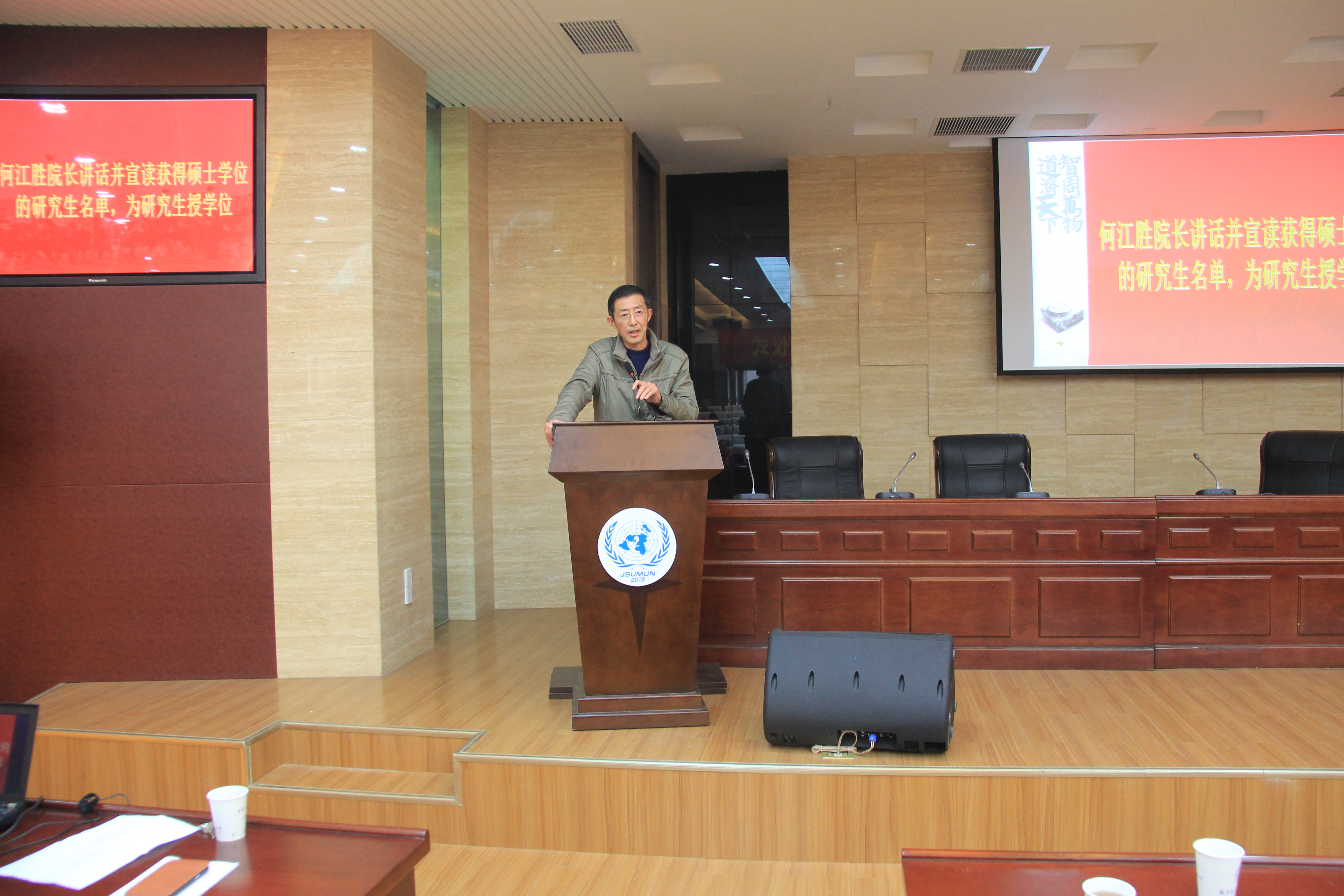下午14点30分,毕业典礼在雄壮的国歌声中拉开序幕。典礼由刘长江副院长主持,刘健荣书记、研究生代表方颖璐、何江胜院长先后讲话。导师代表徐以中副教授则通过诺贝尔奖获得者莫言作品里的一个小故事,形象生动地向同学们讲述了谦逊、宽容以及培养独立思考能力的重要性,希望十三水在线