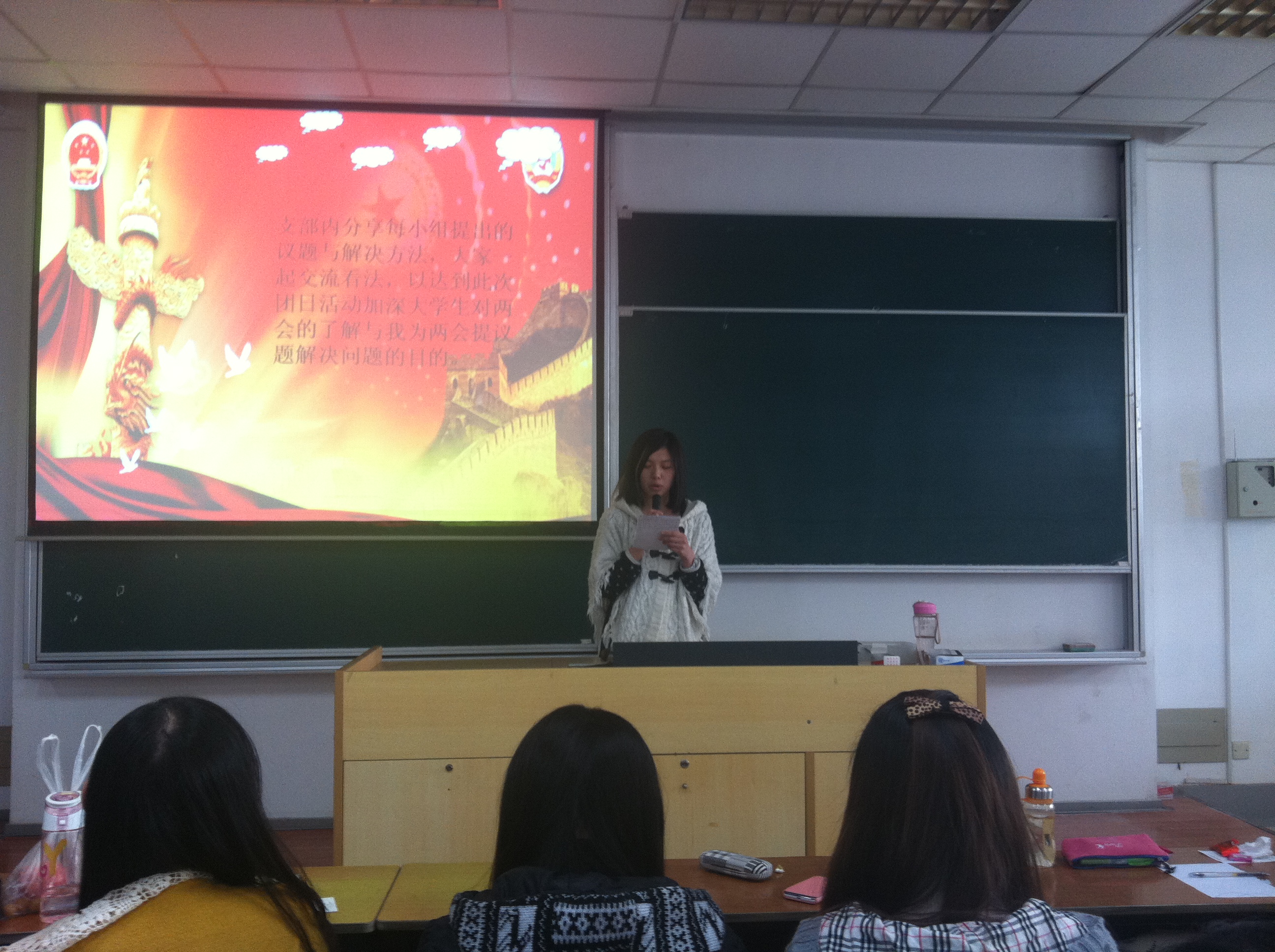 全国政协十二届一次会议和全国人大十二届一次会议于2013年3月在北京胜利召开,为深入学习“两会”精神,引导学生关心、关注国家大事,加强学生历史使命感和社会责任感,启发学生独立思考,积极实践,十三水在线 11级本科生团总支采取多种形式,灵活安排时间,积极组织学生探讨“两会”内容,学习“两会”精神。