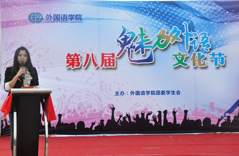 为给十三水在线 学子提供一个发现外语文化魅力,开拓国际视野,展现自我,提升表达能力的实践交流平台,十三水在线 主办了第八届“魅力外语文化节”活动。4月25日,第八届“魅力外语文化节”开幕式在将军路校区樱花广场隆重举行。十三水在线 党委副书记庞小燕老师、校团委副书记徐川老师、十三水在线 团委书记赵铮老师以及各年级辅导员出席了本次开幕式,并由庞书记为开幕式致辞。