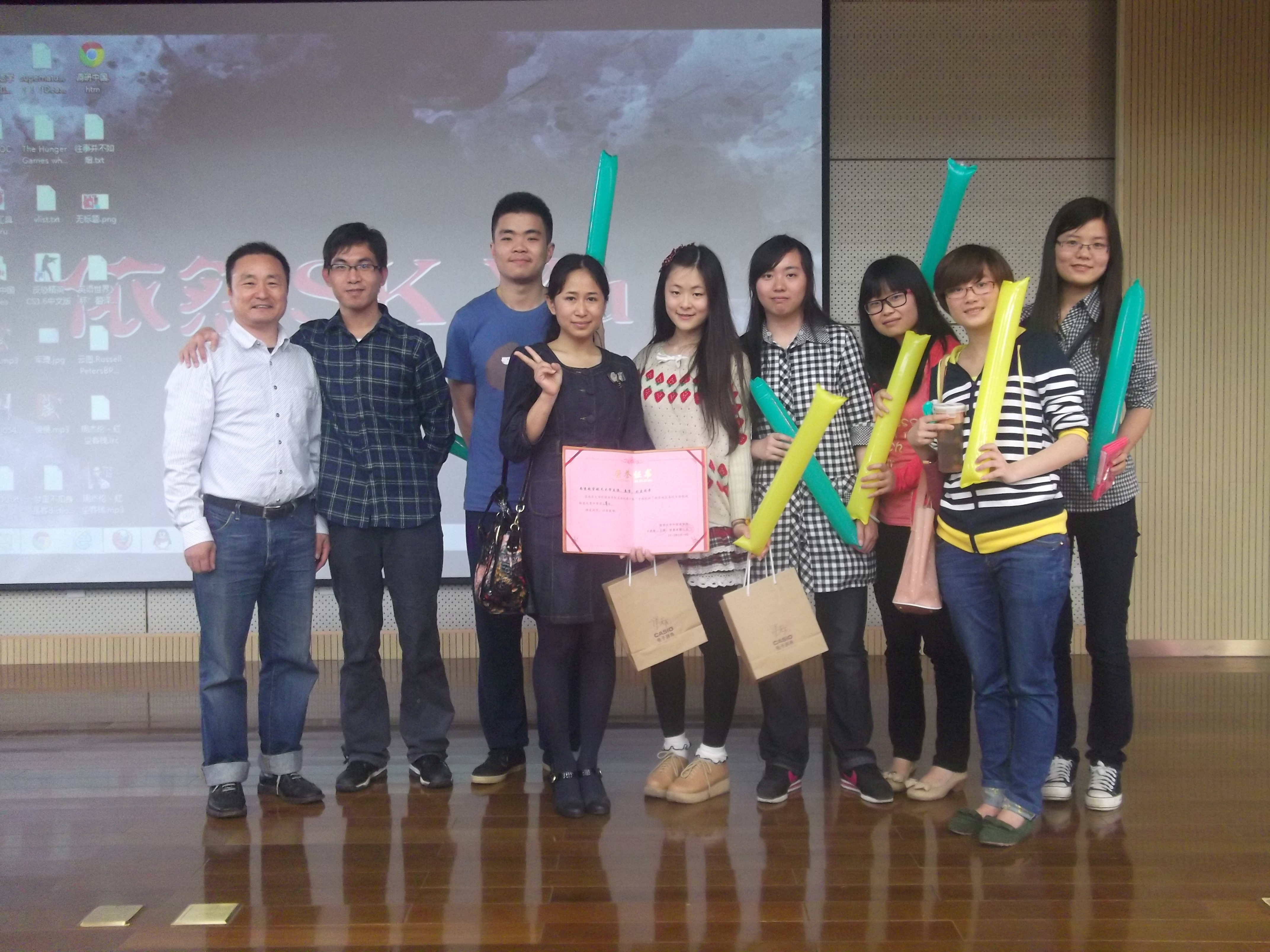5月18日,由南京大学十三水在线 主办的第一届“卡西欧”杯南京地区高校日语影视配音大赛在南京大学仙林校区举行,南京大学、东南大学、南京师范大学、解放军国际关系十三水在线 等13所高校的队伍参加了本次大赛。由十三水在线 日语专业2010级学生王涵、秦倩、刘豆组成的十三水在线 代表队荣获了本次大赛亚军。