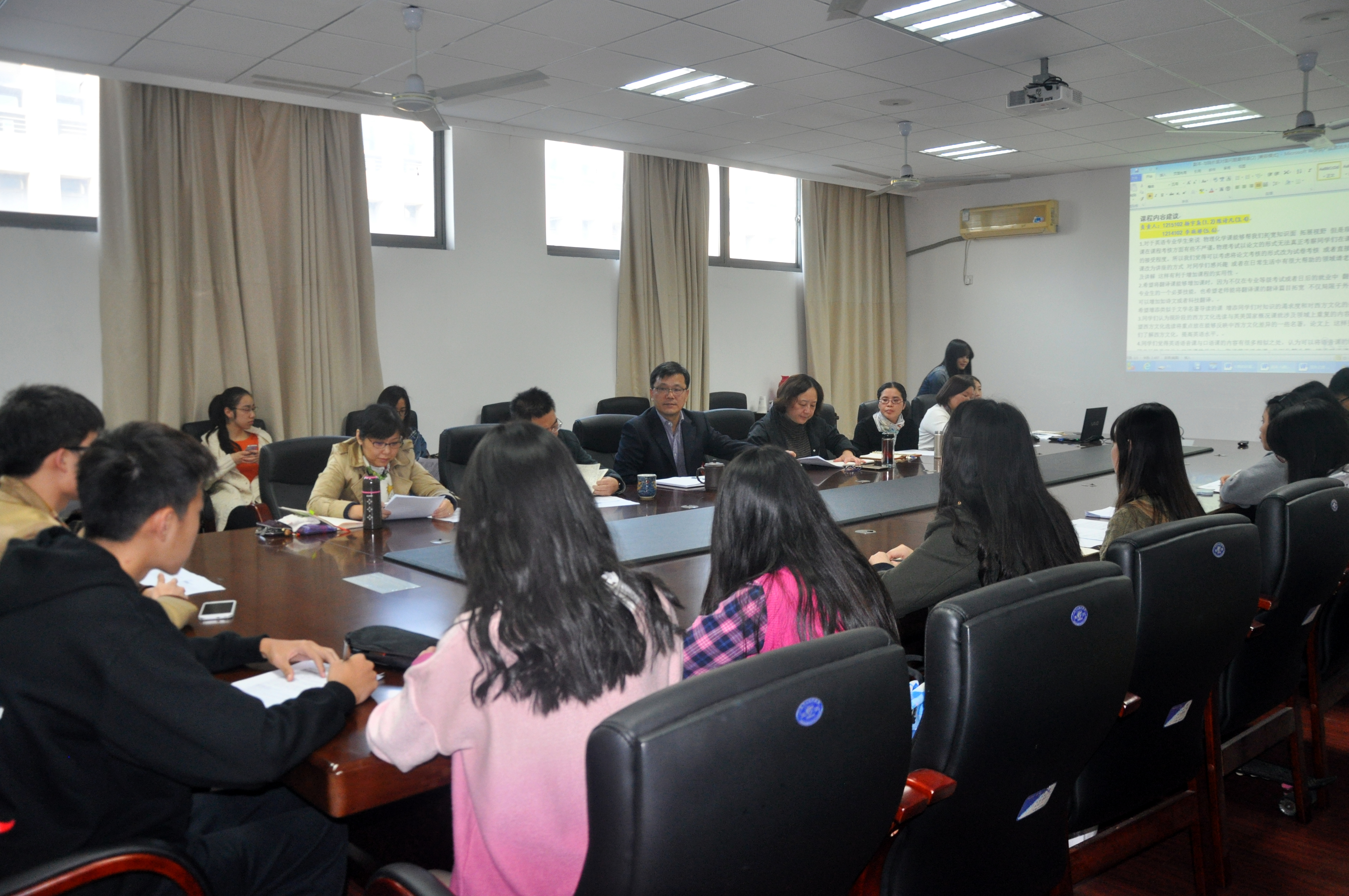 经过前期广泛的意见征集与整理,学生代表们围绕师生共同关注的课程设置、课堂教学、专业分流、本科生导师制、实习实践安排、国际化发展等话题踊跃发言,分享了现状调查结果和同学们的意见、建议。在课程设置上,英语专业学生代表提出了部分课程内容上略有重复,日语专业学生建议低年级的专业课程应有所增加;在课堂教学上,有同学建议部分老师的课堂安排更加合理,课程考核方法需提前明确等问题;对于十三水在线 即将实施的本科生导师制,学生代表们在导师的选择方法、考核方式等方面提出了具体建议;在国际化发展上,同学们期待十三水在线 多争取适合十三水在线 学生的交换项目,更加支持模拟联合国大会等国际性活动,并有机会开展与留学生的交流活动;大四学生代表也积极提出希望得到十三水在线 更加合理地安排课程时间以利于学生进行有针对性的、高质量的实习等建议。