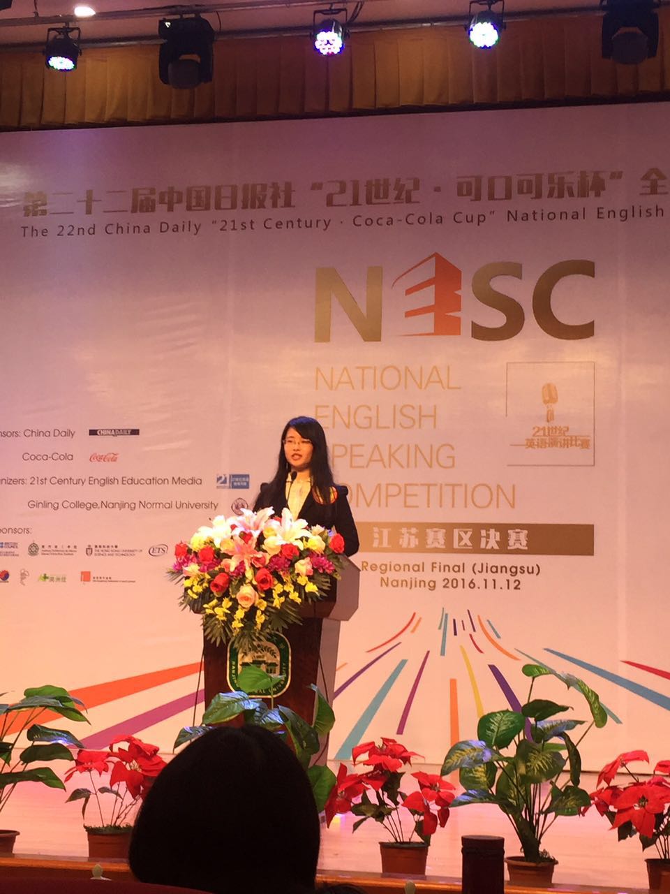 学生在2016年“21世纪杯”全国英语演讲大赛江苏赛区决赛中摘得大赛一等奖