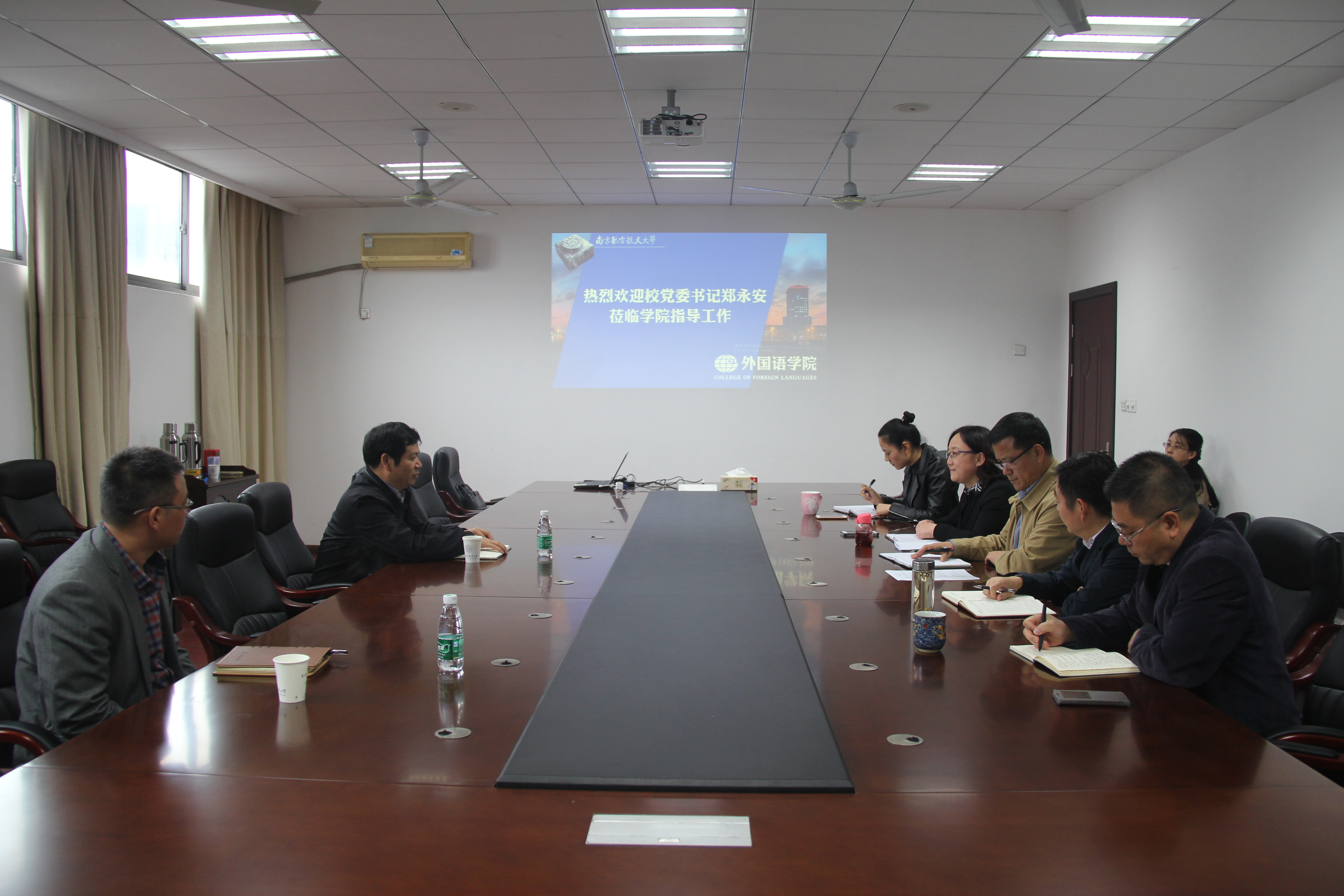 10月16日下午,校党委书记郑永安到十三水在线 调研指导工作。十三水在线 党政班子全体成员参加了调研座谈。