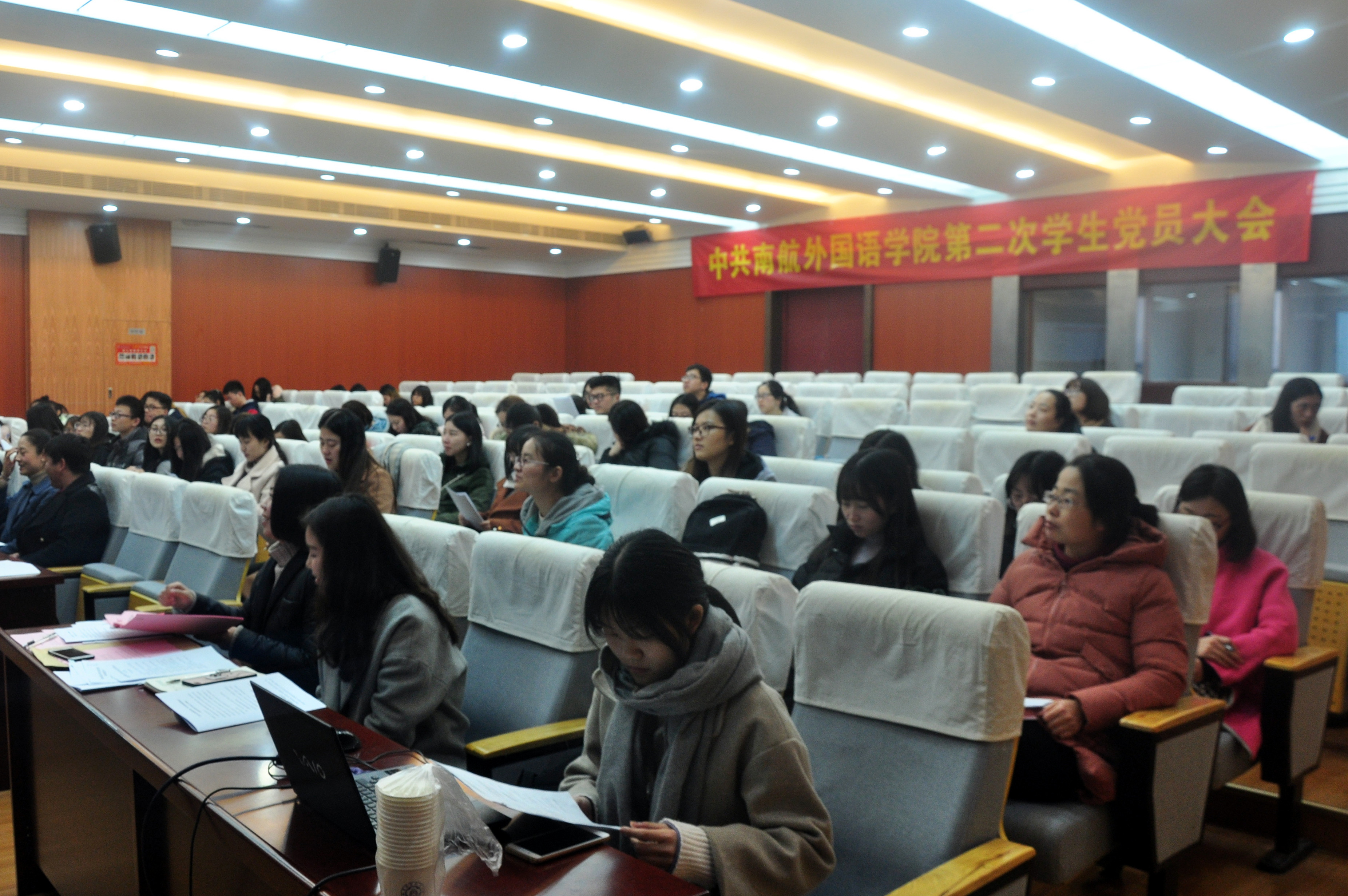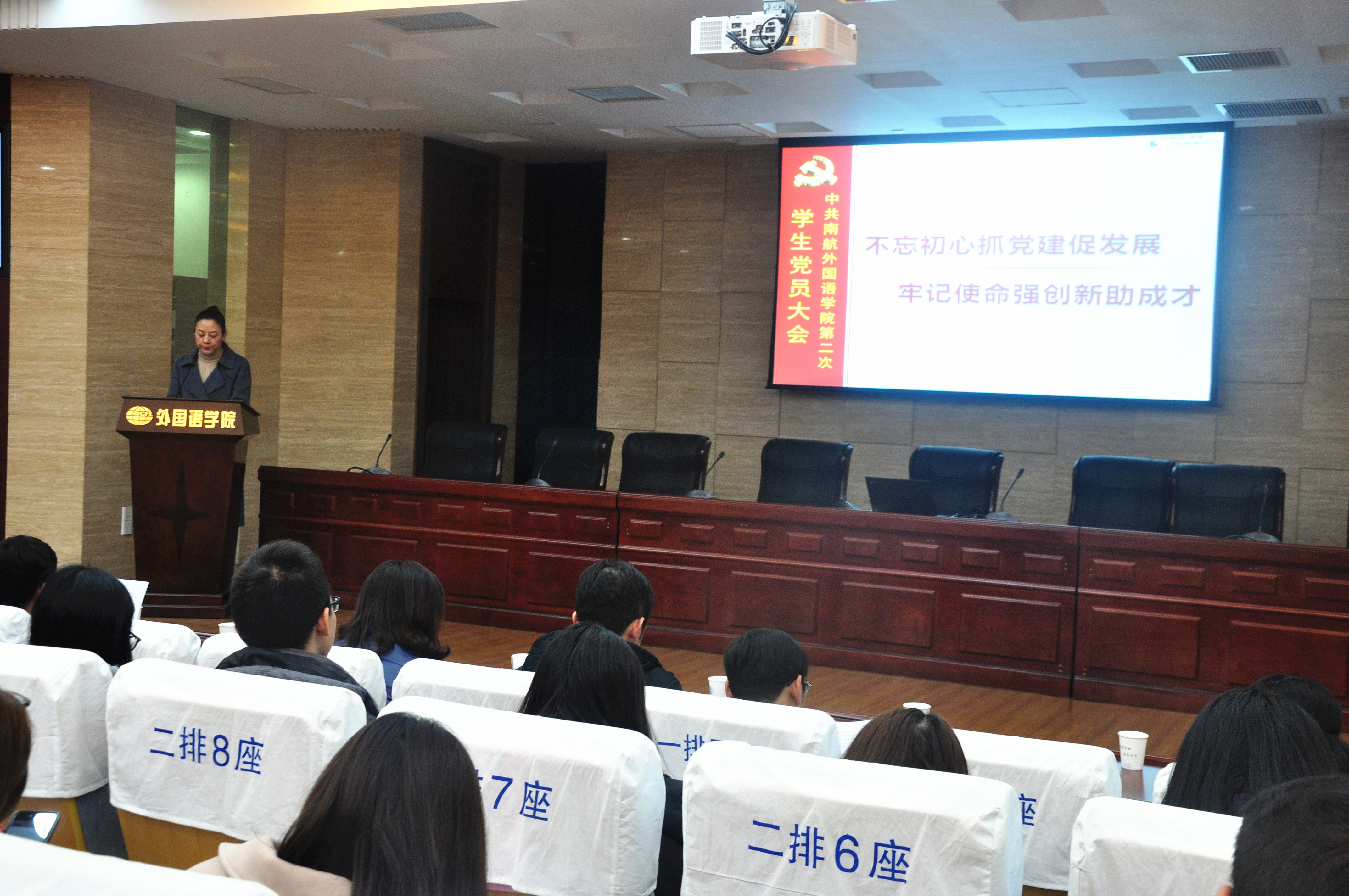 2017年12月22日中午,十三水在线 学生党总支第二次党员大会在将军路校区召开。校党委组织部正科级组织员王宁,院党委书记刘健荣、党委副书记梁薇,英语系、日语系负责人,各年级辅导员和全体学生党员参加了会议。大会由院团委书记杨一主持。