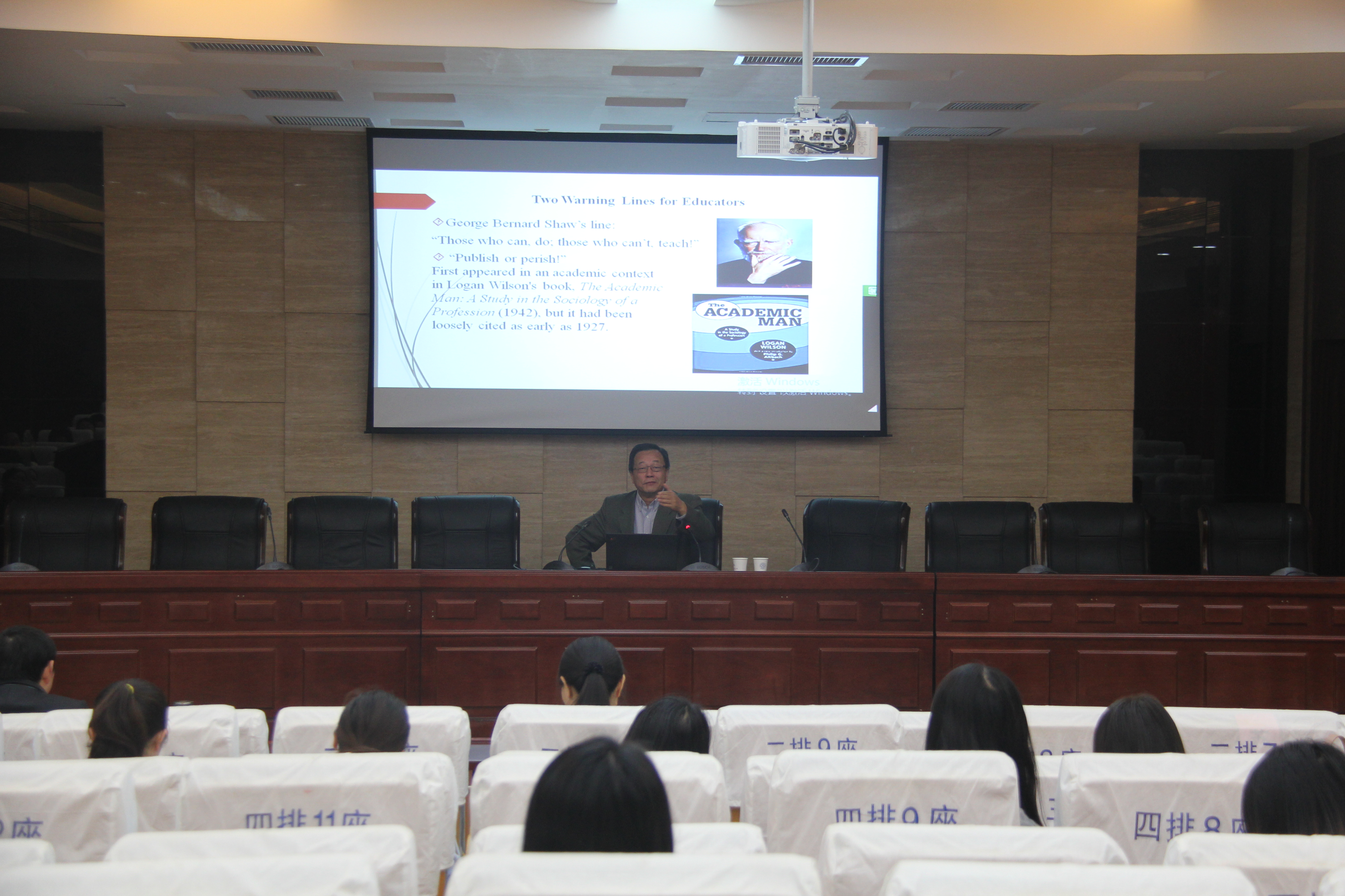 3月30日上午10点,在十三水在线 国际会议中心,哈佛大学英美文学博士、加利福尼亚州州立大学奇科分校教授张爱平做题为“Scholarly Research: An Act of Passion or a Means for Survival?”的英文讲座。讲座介绍了做学术研究的一些基本方面,如文本研究、研究方法的基本原则等;比较了中美学术研究的一些做法、标准和评价;交流了关于做研究的实用的、可持续的方法策略。