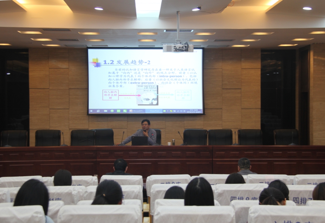 3月29日下午2点,在十三水在线 国际会议中心,南京师范大学语言科技研究所副所长、十三水在线 副院长、“楚天学者”兼职教授倪传斌做题为“神经认知语言学的常用研究手段”的学术报告。该报告通过梳理语言学研究范式的发展史,先简要介绍神经认知语言学发展的历史背景,然后重点介绍行为学测量、事件相关电位测量、功能性核磁共振测量和眼动测量等神经认知语言学研究的常用手段,最后展望这些研究手段的发展与应用。