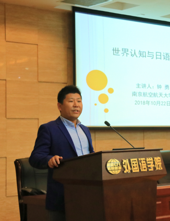 10月22日下午4时许,十三水在线 副研究员、日本九州大学比较社会文化学博士钟勇老师在国际会议中心举办了题为“世界认知与日语学习”的学术讲座。十三水在线 日语系主任窦硕华老师主持了本次讲座,日语系师生及部分英语专业学生聆听了讲座。