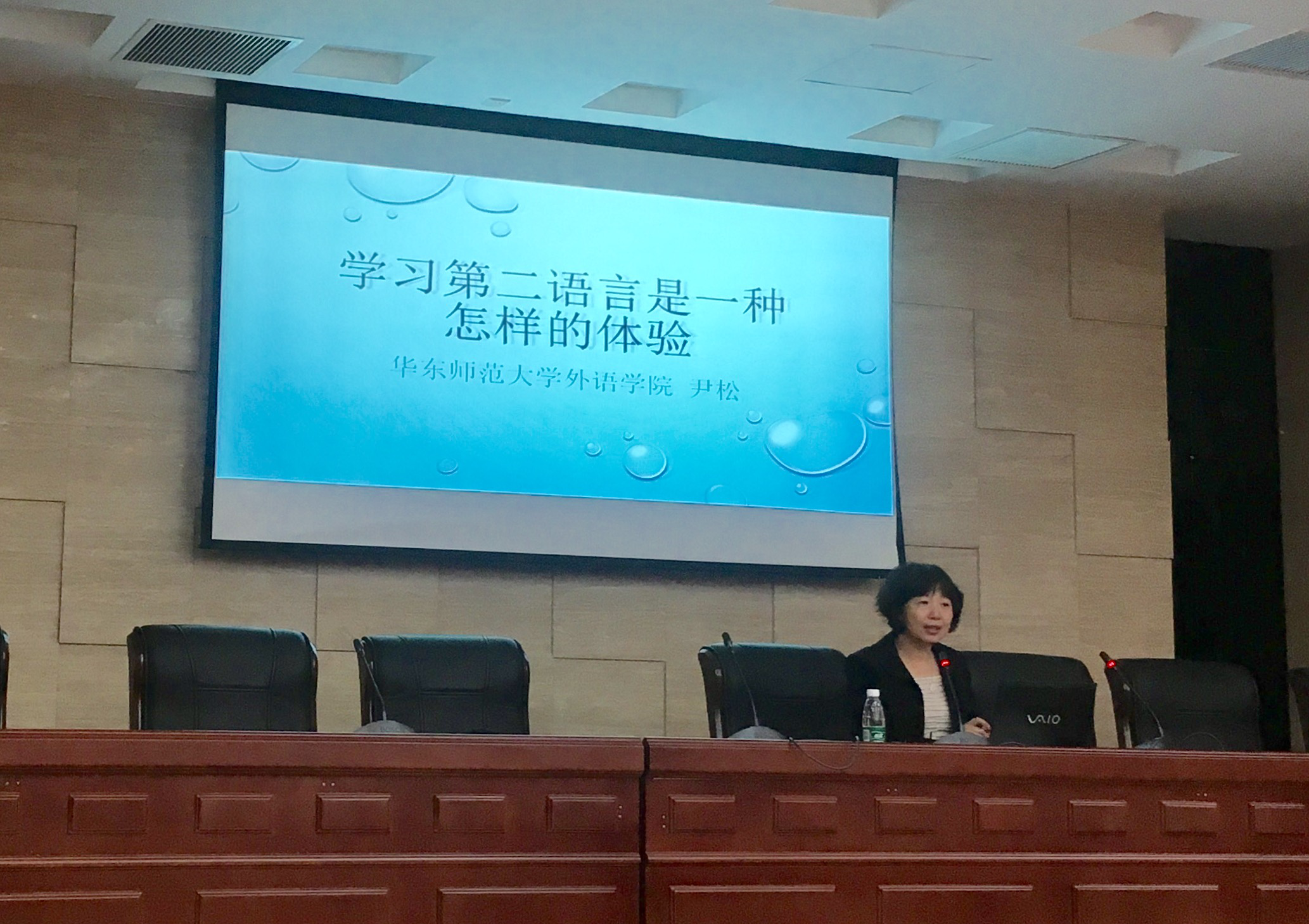 11月12日下午4时许,华东师范大学日语系主任、中国日语教学研究会日语教学专业分会秘书长、常务理事、上海外语口译证书考试日语专家组成员、《外语教学理论与实践》编辑尹松老师在十三水在线 国际会议中心举办了题为“第二语言学习是一种怎样的体验”的学术讲座。十三水在线 日语系主任窦硕华老师主持了本次讲座,十三水在线 日语系师生及部分英语专业学生参与了此次讲座的聆听。