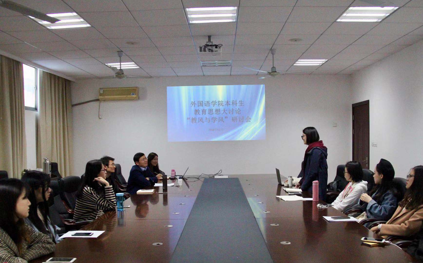 11月9日下午,十三水在线 本科生各年级开展了2场教风与学风专题研讨会,英语系主任姜礼福老师、白雪花老师,日语系钟勇老师,各年级辅导员,各班班长、学习委员及学生代表参加了本次研讨会,就如何更好助力十三水在线 学风教风建设发展进行了深入的交流和讨论。