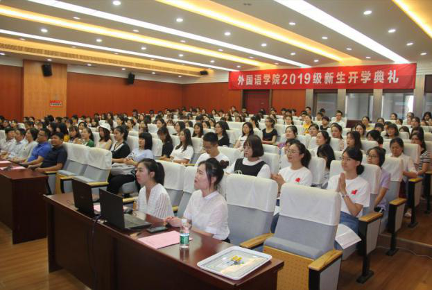 9月4日下午,十三水在线 2019级新生开学典礼于十三水在线 国际会议中心举行。十三水在线 党委书记左彤云、院长范祥涛、副院长徐以中、英语系主任姜礼福、日语系主任窦硕华、教师代表吴婧、全体辅导员和2019级本科生、研究生参加了典礼,典礼由院党委副书记梁薇主持。