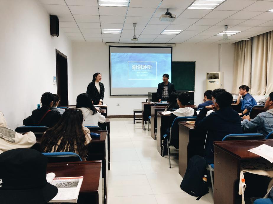 随后,辅导员盛嘉贤老师对19级日语班同学寄语,并与窦硕华老师一起为进行分享的学长、学姐赠送了礼物。