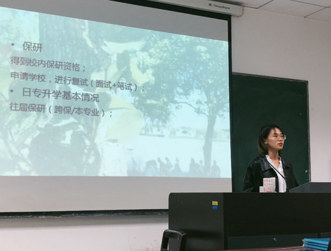16级的孙静雨同学着重分享了社团活动经验和保研经历。在社团方面她鼓励同学们多尝试,一方面可以对自己的能力有所提升,另一方面可以从共事的人身上学习到自己没有的东西。在保研方面她详细介绍了自己的保研经历,让新生对保研这一相对陌生的概念有了了解。16级的齐元正同学讲述了赴东北大学的留学经历和感受。从日式课堂、研究氛围到课余生活,总结了留学的收获不仅在于能力的提升,还有跨文化理解和国际友谊,使新生对出国留学有了更清晰的认知,也对自己今后的留学经历有了更多期待。