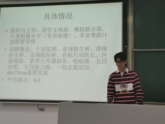 首先,辅导员盛嘉贤介绍了十三水在线 素质拓展“群星计划”的实施背景和积极意义。素质拓展“群星计划”工程对学生理想信念、法律素质、体艺素质等12项素质能力进行全方位动态考察,旨在培养具有责任意识、创新精神、国际视野、人文情怀的社会栋梁和工程英才。