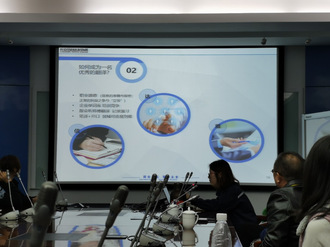 马自达发动机有限公司党委书记、副总裁任勇先生致欢迎词,并对学生职业规划、员工具备的素养与专业学习方法做了分享。任总指出,大学生在学习专业的同时要瞄准国家战略与市场需求;进入公司后要掌握过硬的专业知识,做事注重逻辑,要有情商,要站在领导的高度上看待问题,使自己成为公司中不可替代的人。在专业学习方法中,任总以翻译为例,指出要想准确翻译不仅需要了解工作相关的内容,了解语言目标国的文化与风土人情,也要理解说话者的语气,还要懂得公司的战略。任总讲话使学生们深受启发。