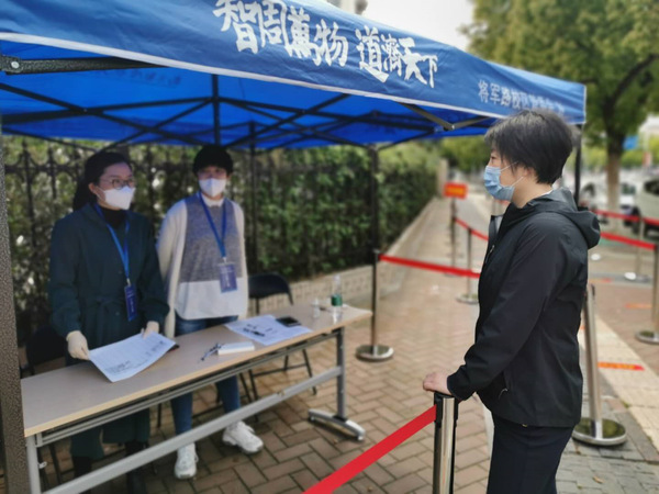 返校第一天,十三水在线 党委书记左彤云来到将军路校区北门了解十三水在线 学生返校的实时情况,在校门口迎接返校学生,对毕业生们给予关心与慰问,并与现场学工人员一起处理返校学生突发状况。