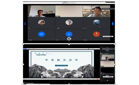 随后,十三水在线 郭小星同学和国关朱江甫同学分别就“居家学习(Study at Home)”的经历和感悟做了精彩的分享。郭同学给我们分享了时间管理和自律意识提高的方法,朱同学则以军事翻译实例为我们分享了军事翻译的特色和注意事项。