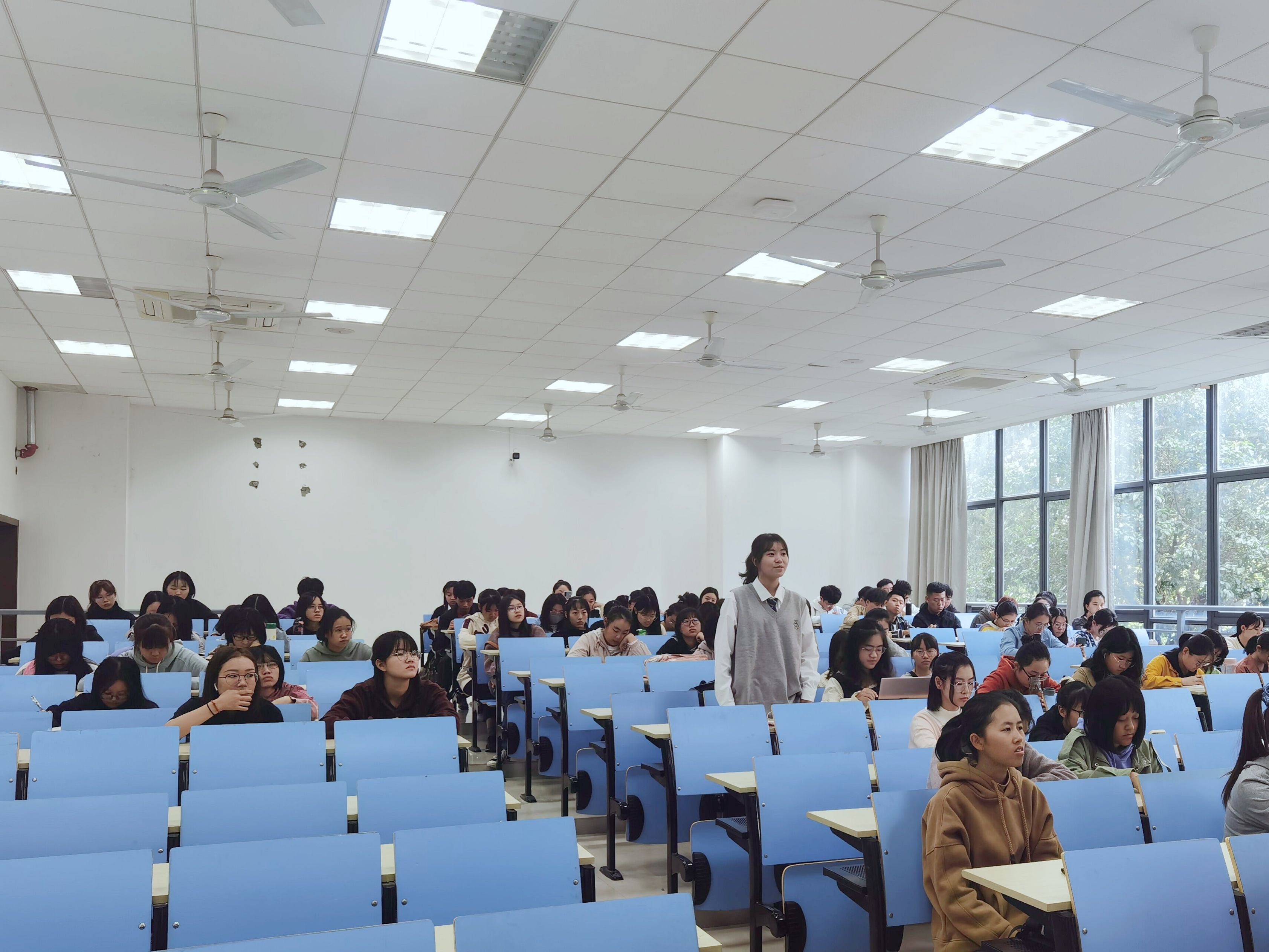 活动开始,盛嘉贤和学生进行现场互动,邀请同学分享关于观看“十三水在线 素养公开课暨本科生评优评奖答辩”的感受。同学们表示优秀学子的精彩答辩使他们很受鼓舞,意识到学好专业知识的同时,更要综合发展、不断进取。