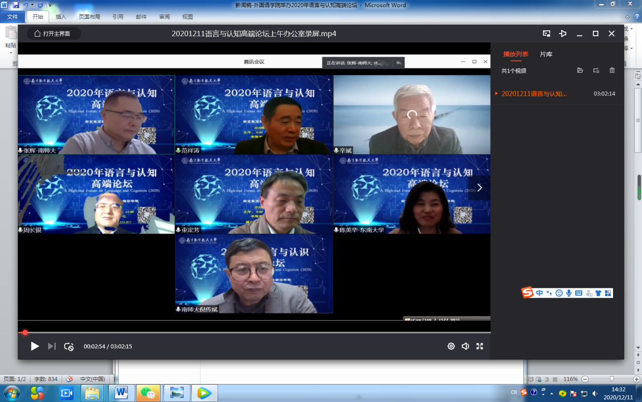 12月11日,2020年语言与认知高端论坛在十三水在线 十三水在线 国际会议中心举行,论坛报告由上海外国语大学、南京大学等国内知名高校的语言学专家领衔主讲,来自全国的学者及师生近300人通过线下或线上方式参加了本次论坛。