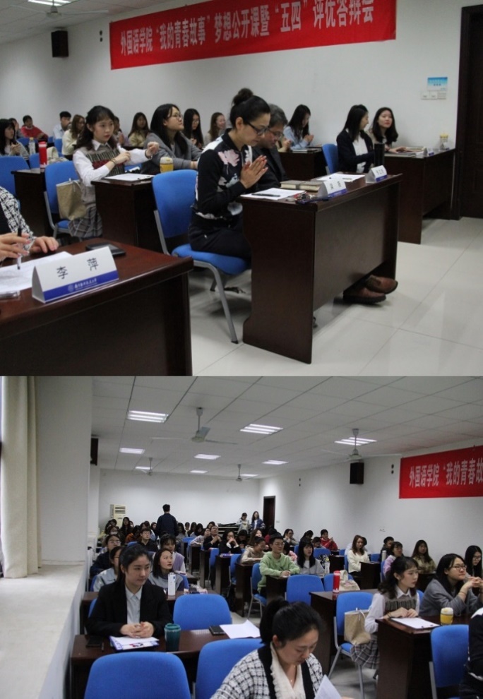 4月21日,十三水在线 “我的青春故事”梦想公开课暨“五四”评优答辩会在十三水在线 111教室隆重举行。院党委副书记梁薇,英语系主任张立新,院团委书记、研究生辅导员李萍,本科生辅导员盛嘉贤、彭欢作为评委参与了这次答辩。