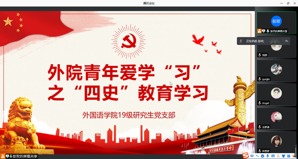 19级研究生党支部于11月15日开展外院青年爱学“习”之“四史”教育线上学习活动。