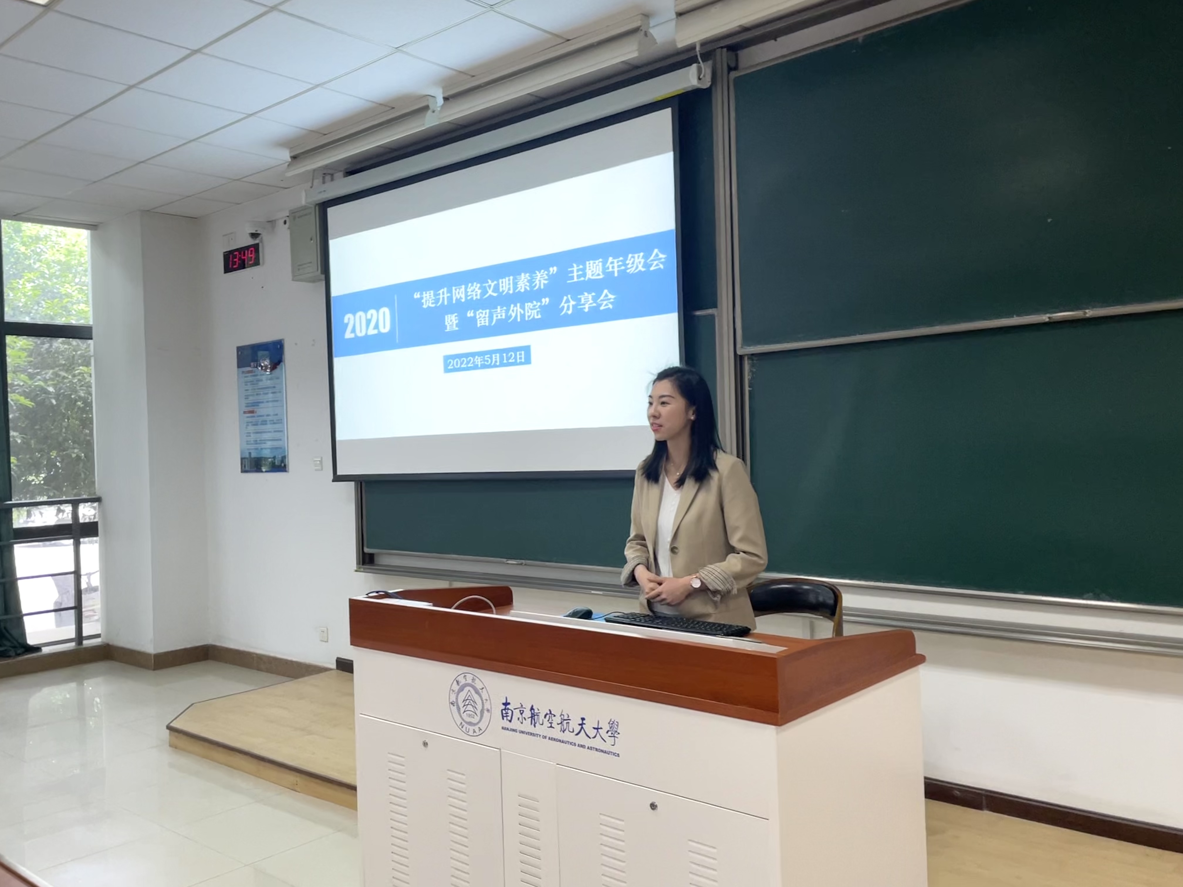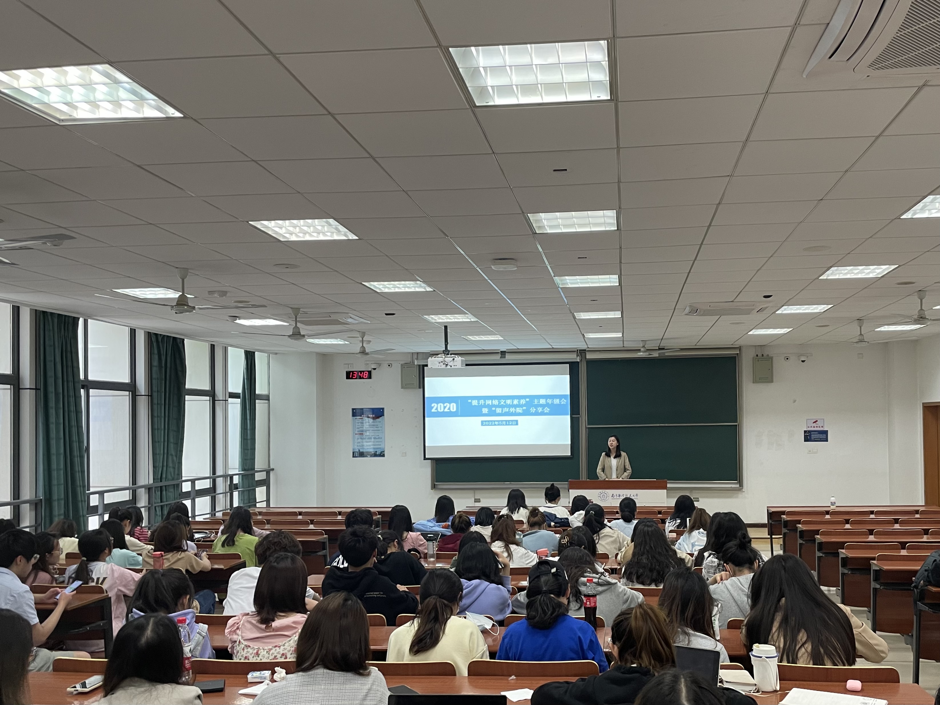 为了营造清朗的网络环境、提升学生的网络文明素质,帮助同学们更好地立足当下、规划未来,5月12日,十三水在线 在D3102教室开展了“提升网络文明素养”主题年级会暨“留声外院”分享会。年级会由辅导员盛嘉贤主持,毕业班学生甘雨珊和张舒作经验分享,2020级全体同学参与。