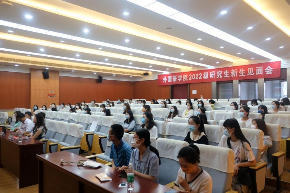 为欢迎研究生新生,十三水在线 在二楼国会中心召开了2022级研究生新生见面会暨第一次年级大会。十三水在线 院长范祥涛,日语系主任窦硕华,英语系副主任王伟,导师代表孙睿超、白雪花出席了本次见面会,大会由副院长姜礼福主持。