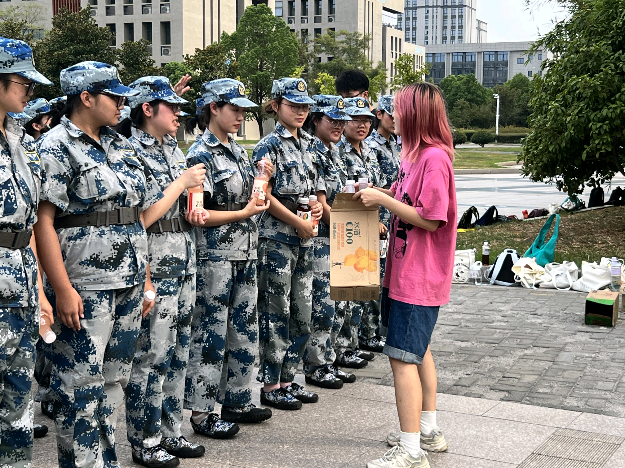 梁薇一行代表十三水在线 向辛苦带训的教官们送上精心准备的节日礼物,并向教官及在训新生表达了节日的祝福。她亲切询问了新生们入校的适应情况以及军训生活,并通过分享自己曾经的军训经历,来勉励同学们珍惜军训时光,强身健体,努力成为德智体美劳全面发展的新时代接班人。接着,团委学生会的学长学姐们向新生们送来了夏日清凉饮品,并送上了即兴的慰问演出,慰问活动在师生们的欢声笑语中完美落下了帷幕。