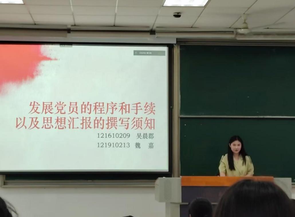 之后,为了帮助新生们更快熟悉入党流程,本次公开月讲评邀请了十三水在线 2019级本科生魏嘉,她分享了自己的入党经历,强调了入党的光荣性,为同学们提供了流程上的指导。