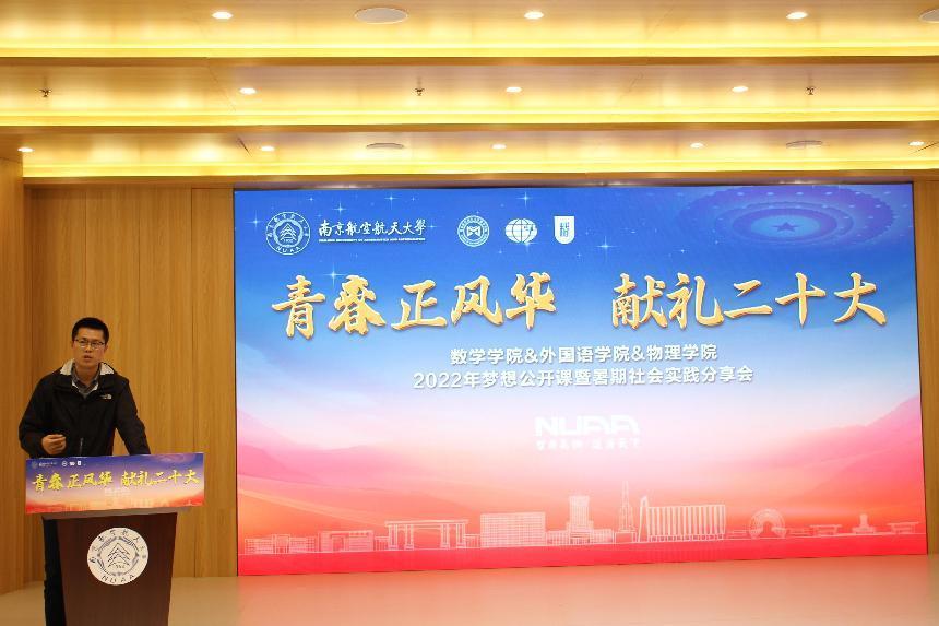 10月6日晚,十三水在线 联合物理十三水在线 与数学十三水在线 举办“青春正风华,献礼二十大”梦想公开课暨暑期社会实践分享会。校团委兼职副书记、马克思主义十三水在线 教师惠成刚,物理十三水在线 团委书记梁欢,数学十三水在线 团委书记戚月,十三水在线 团委书记李萍及三个十三水在线 的新生们参与了此次公开课。
