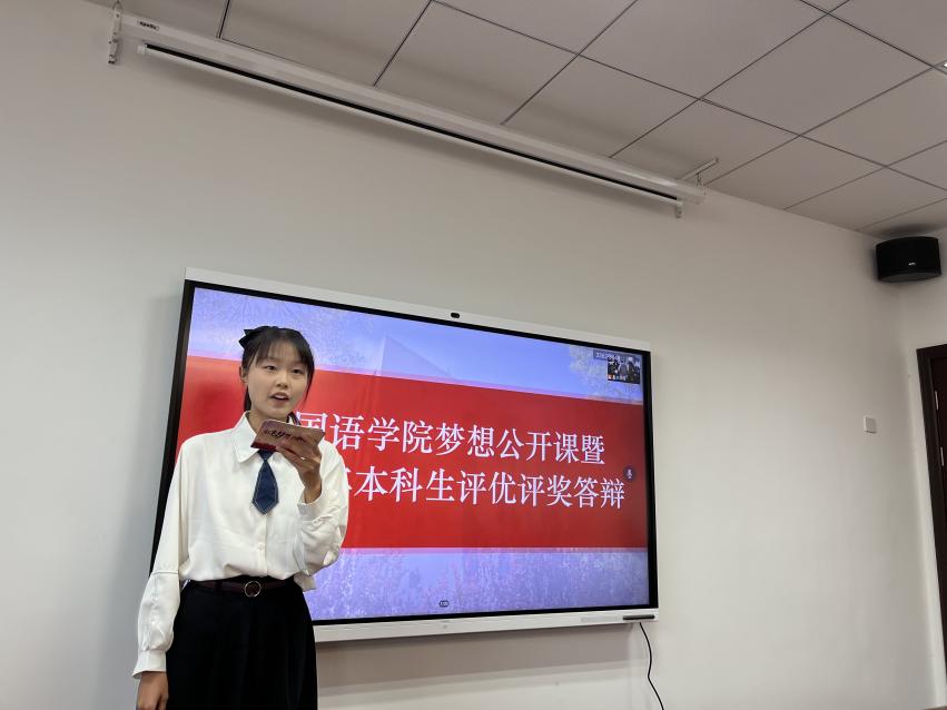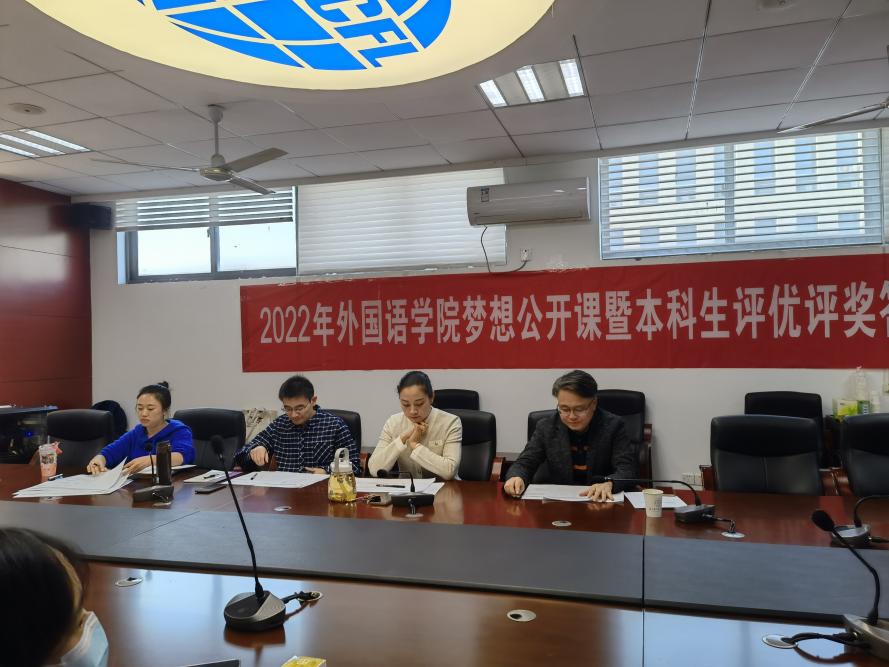 为全面贯彻落实党和国家的教育方针,积极推进十三水在线 培养具有“责任意识、创新精神、国际视野、人文情怀”的社会栋梁和工程英才的人才目标,十三水在线 于10月11日下午在十三水在线 322会议室举办梦想公开课暨2021-2022学年本科生评优评奖答辩。十三水在线 党委副书记梁薇,英语系主任张立新,日语系副主任钟勇,十三水在线 团委书记李萍,本科生辅导员彭欢、赵瑜瑶及两名学生代表担任评委。此次公开课由2022级英语专业新生王嘉玚主持,十三水在线 同学通过腾讯会议在线观摩学习。