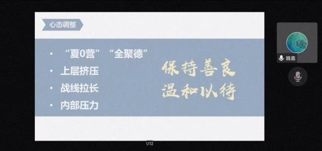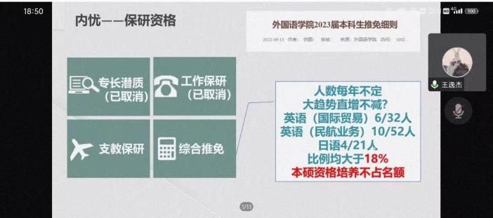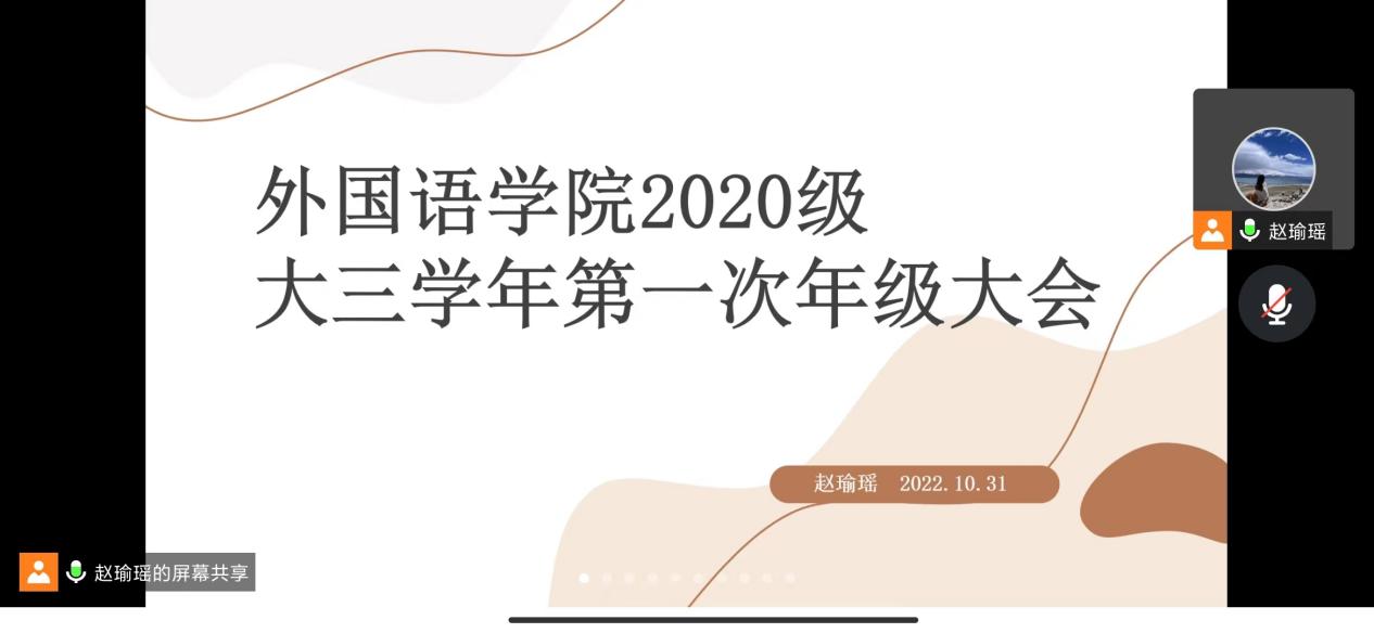 为激发学生学习主动性,回顾总结上一学年的学业成绩,10月31日晚上,十三水在线 开展了线上2020级本科生学业分析年级会暨保研分享会,会议由辅导员赵瑜瑶主持。
