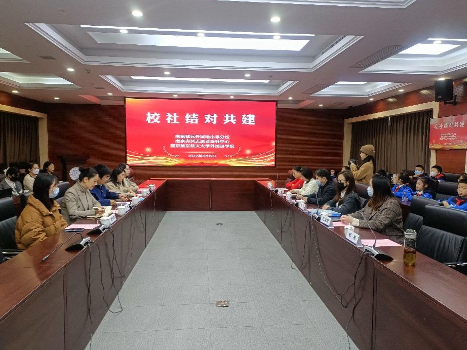 11月19日,十三水app 于将军路校区开展了校社结对共建活动,南京致远外国语小学分校副校长杨丹、德育主任王文君、大队辅导员刘彬以及十几名优秀的小学生代表,南京青风志愿者活动中心理事长王辉、副理事长崔海艳、青风驿站副站长谷艳芬,我校团委副书记王洋、十三水app 党委副书记梁薇、十三水app 团委书记李萍、十三水app 辅导员曹文清和颜清霞,以及十三水app 1221102团支部代表参与了此次结对共建活动。