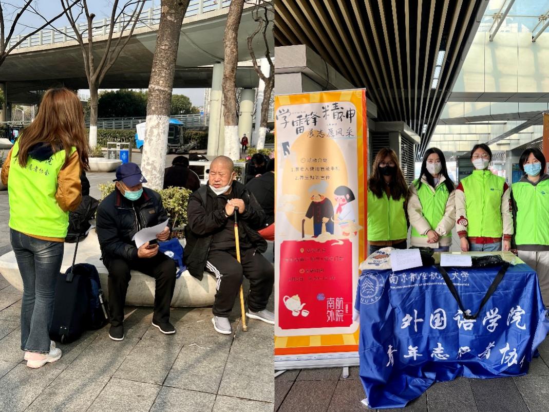 在人潮如织的南京站广场,忙碌的志愿者是一道亮丽的风景线。“同学,我的手机最近太卡了,常常收不到消息,是不是需要清理一下,你能教教我吗?”“志愿者你好,最近电视上说要下载国家反诈中心App,在哪下载呀?能不能帮我下一个?”面对老人们一个个疑问,志愿者一一解答,耐心地帮助老人,直到老人们越来越熟悉,慢慢地能上手操作。除了帮助指导老人熟练使用智能手机,帮助他们跨越“数字鸿沟”,我们的志愿者还面向老人宣传有关健康养生的小知识,努力践行“奉献、友爱、互助、进步”的志愿者精神。