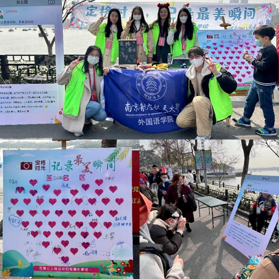 在微风徐徐的玄武湖畔, “定格时光,记录最美瞬间”——为游客拍摄趣味拍立得合影,留住春日美好瞬间,提供展板供游客涂鸦签名,记录春日美好心情。充满童趣的活动吸引了众多大小朋友,既有温馨有爱的一家三口,也有年过八旬精神矍铄的微笑奶奶,还有共同历经风雨的退役战友,志愿者用镜头记录他们的笑容和美好瞬间。