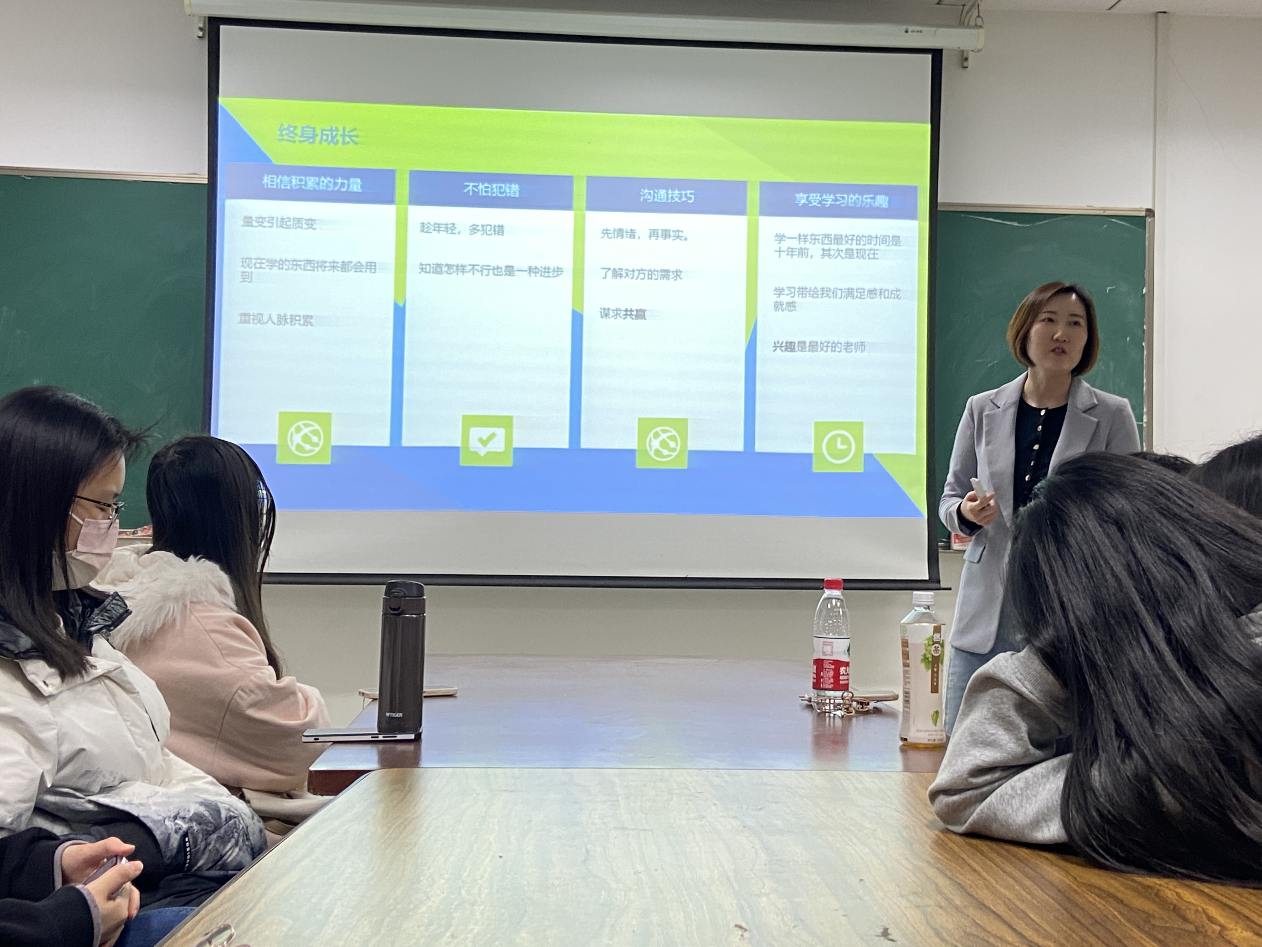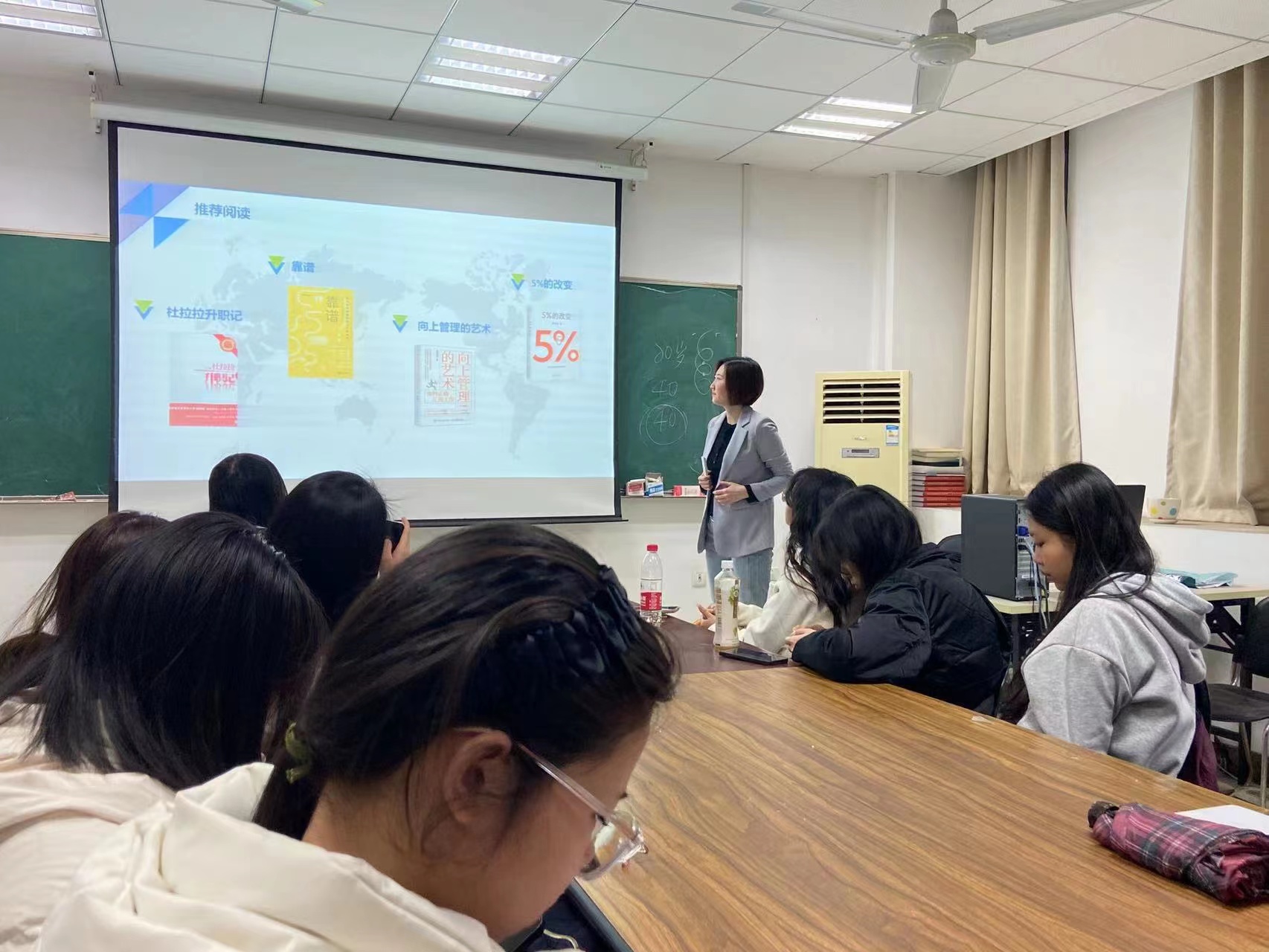 除此之外,郭璇经理还向同学们简明扼要地讲解了日企工作方式,并分享了自己的心得体会。她强调“融入团体能力”、“观察十三水app”等对于个人的职业生涯规划发展起着重要作用。同时,给出了“坚持终身发展”的建议,激励同学们敢于试错、积极沟通、相信积累、享受学习。最后,她为同学们推荐了四本职场相关的书籍,希望能为大家融入职场提供帮助。