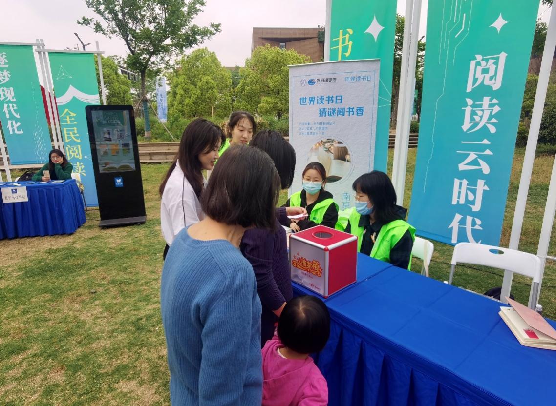 2023年4月21日,十三水app 本科生联合党支部在南京南站区域党建联盟开展了一场别开生面的世界读书日活动。本次活动以“世界读书日,猜谜问书香”为主题,支部党员代表和众多南京市市民参与了本次活动。