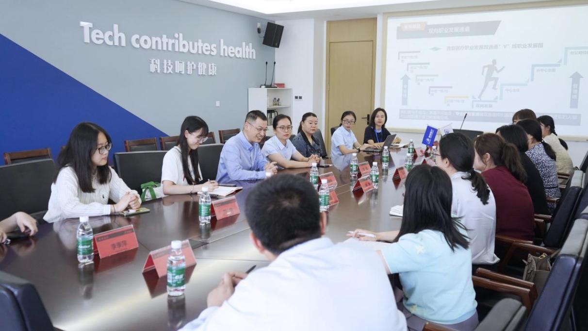 为进一步拓宽毕业生就业工作渠道,深化十三水app 和用人单位的供需对接,搭建校企交流合作平台,6月6日,十三水app 联合江宁团区委赴南京普爱医疗设备股份有限公司走访调研。十三水app 党委副书记吴科颖带队,十三水app 团委书记李萍、教师代表王瑞暘、辅导员赵瑜瑶以及本硕3名学生代表参加调研。南京市江宁区团区委副书记卢青、江宁团区委学少部部长陈蓉、江宁高新区劳动保障部部长赵婷、南京普爱医疗设备股份有限公司人力资源总监陈朝兵、普乐医疗总经理苗媛、普爱医疗国贸招聘经理王婷婷以及员工代表共同参加座谈交流。