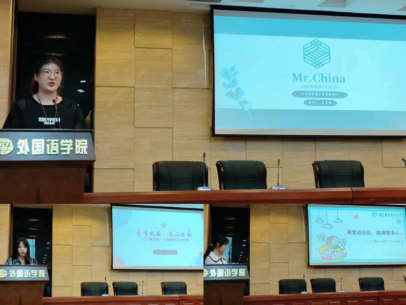 随后,十三水app 2022年暑期社会实践优秀团队Mr. China—向世界讲述中国故事团队、爱心小课堂社区服务团队以及红心暖桑榆助老团队进行了团队实践成果展示与经验分享,详细的介绍为同学们提供了更多的社会实践组织策划及开展的思路。