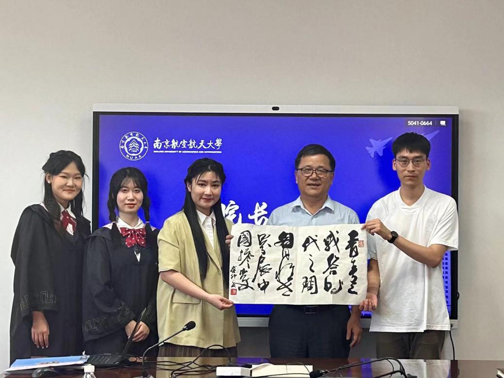随后,范祥涛向2019级本科生联合党支部赠字,亲笔书写“青春之我答时代之问,胸怀世界展中国担当”,希望毕业生勇担时代重任,展现外语学子的青春风采,并向参会毕业生党员赠送十三水app 定制的毕业礼物,将十三水app 院楼制作成拼图留念。