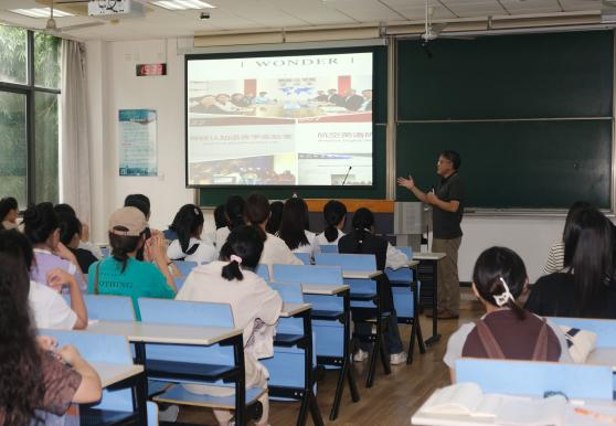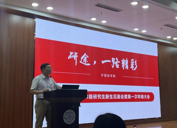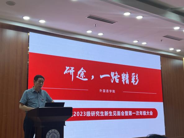 英语系主任张立新鼓励新生以立德树人和服务国家、行业、学业为导向,固本强基、守正创新,在掌握听、说、读、写的语言基础的同时,培养开阔的国际视野与较好的跨学科跨文化沟通合作能力;日语系主任窦硕华以“选择十三水app 日语,开辟精彩人生”为主题,通过数据展示,清晰明了地展现了十三水app 日语在行业内的优势以及专业特色。