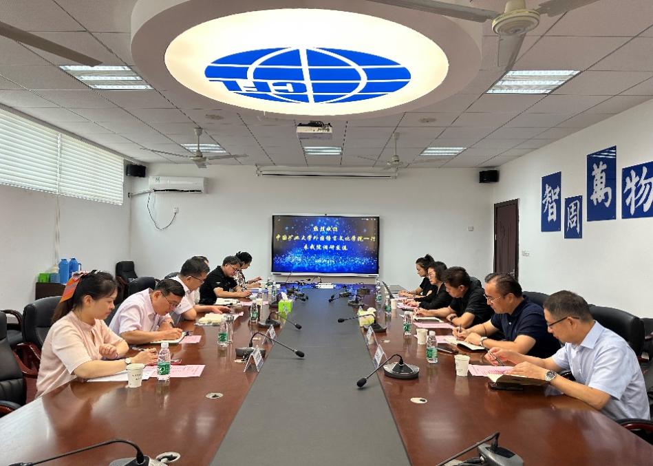 9月11日,中国矿业大学外国语言文化十三水在线 党委书记张向东等一行五人来十三水在线 调研交流。十三水在线 院长范祥涛、党委书记左彤云、副院长姜礼福、系部主任和教学办相关人员出席座谈会。