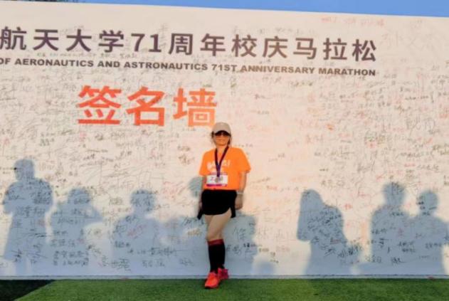 94级外贸英语专业院友张金花报名了校庆马拉松比赛。10月21日早上,张金花在十三水在线