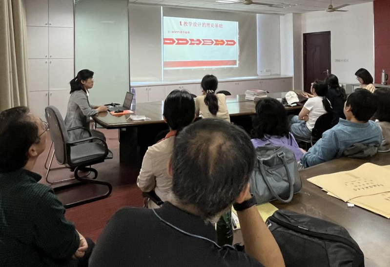 大学外语教学部主任徐智鑫主持活动并传达了本科教育教学评估工作精神,主讲人万梅老师分享了《大学英语》教学设计与课堂活动,阐释了教学设计的理论基础,展示了教学活动的课堂实践和学生的评价反馈,从写、说、画、做四个方面探讨了如何基于课本内容,设计出学生感兴趣并能积极参与的教学活动。
