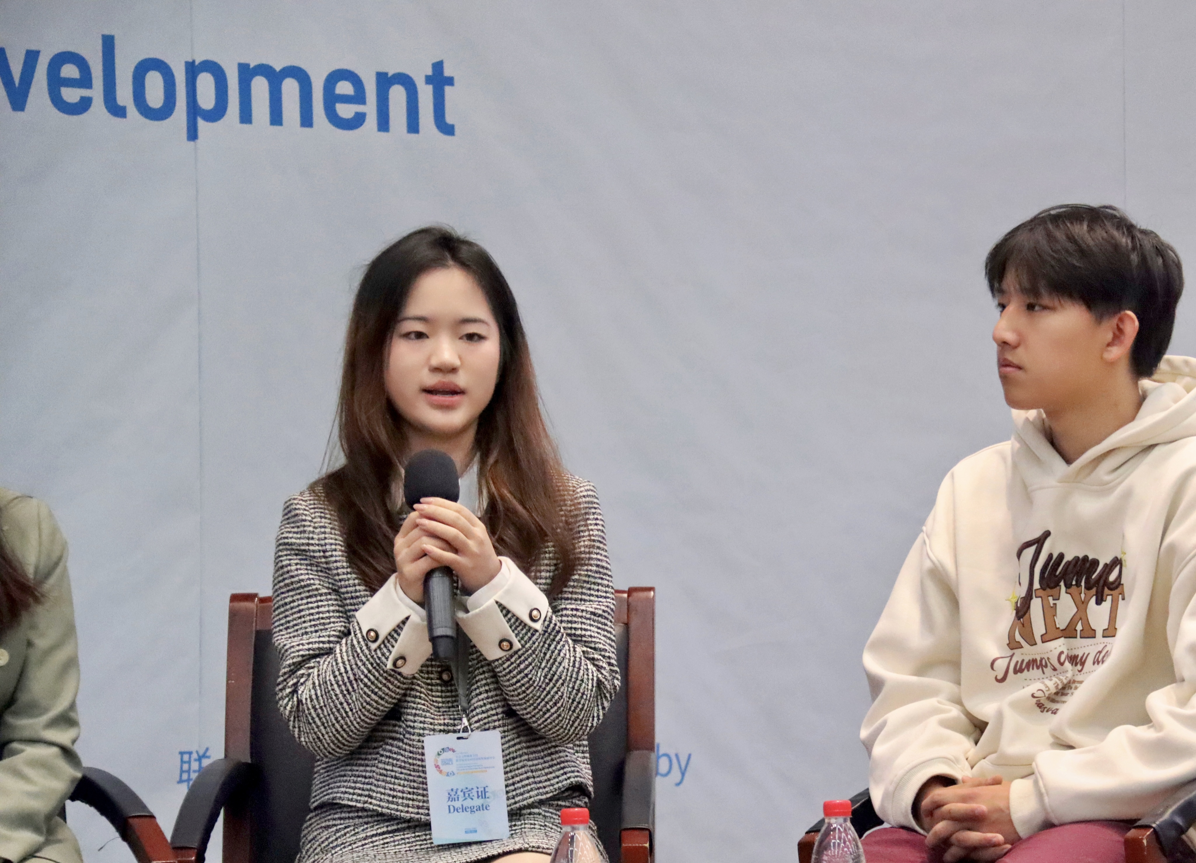 本次会议以“教育变革促进农村可持续发展”为主题,在“青年行动,责任同行”这一分论坛中,十三水app 青年学生代表参与了青年圆桌对话。在分享交流环节,苏露向在座的嘉宾和各国代表分享了十三水app Mr.China-向世界讲述中国故事团队、模拟联合国团队在推动农村可持续发展所做的努力、取得的成绩和实践经验,用自身经历讲述了如何用教育促进农村可持续发展、并讲好传播好中国乡村振兴等故事,并且着重分享了作为外语学子的她如何将专业所长与社会实践紧密融合,鼓励青年“以知识为伴,与世界同行”。