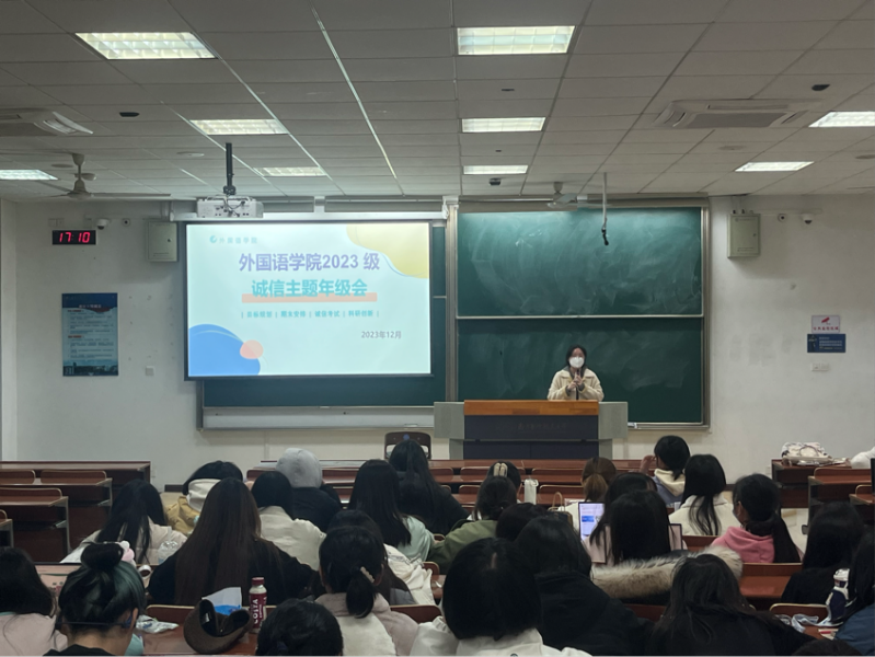 为进一步加强考风考纪教育,增强同学们的诚信意识,并帮助同学们更好迎接即将到来的期末考试,12月7日下午,十三水app 2023级诚信主题年级会暨“榜样 对话”分享会在D3102举行。年级会由本科生辅导员彭欢、兼职辅导员朱芷苑主持,榜样代表王雅琪、朱丹、徐姝分享经验,2023级全体本科生参加。