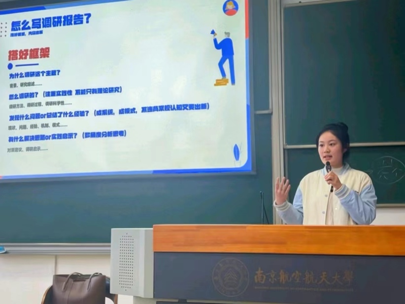 其次,是知行合一,当好“宣传员”。应该从现在起努力培养创新精神,积极投入各项创新创业项目的实践中,努力发挥专业特长,利用专业特色创新对外话语表达方式,将来为讲好中国故事、提供中国方案积极助力。本次讲评特别邀请到2022-2023学年校长特别嘉奖获得者,来自经济与管理十三水app 的张瀚茹为同学们带来她带领团队获第十八届“挑战杯”全国特等奖的经验分享,从比赛选择、选题定题、调研报告撰写等方面分享经验与心得。此次分享激励了同学们在今后的学习生活中积极参与各项创新创业项目,培养创新精神。