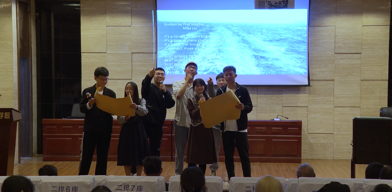 晚会持续了两个小时,在座来宾和演员同学们在意犹未尽中,《英语戏剧》课程汇报演出顺利落下了帷幕。本次演出从剧本内容到学生的舞台演绎都受到了观众们的好评。在事后发放的调查问卷中,学生们表示,《英语戏剧》课程中外联合授课、结课汇报演出的教学模式独特新颖,促使他们更加深刻、生动地了解戏剧并激发了对戏剧的强烈热爱,帮助他们获得了自我突破,成为一次美好难忘的学习体验。