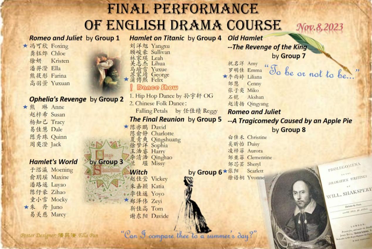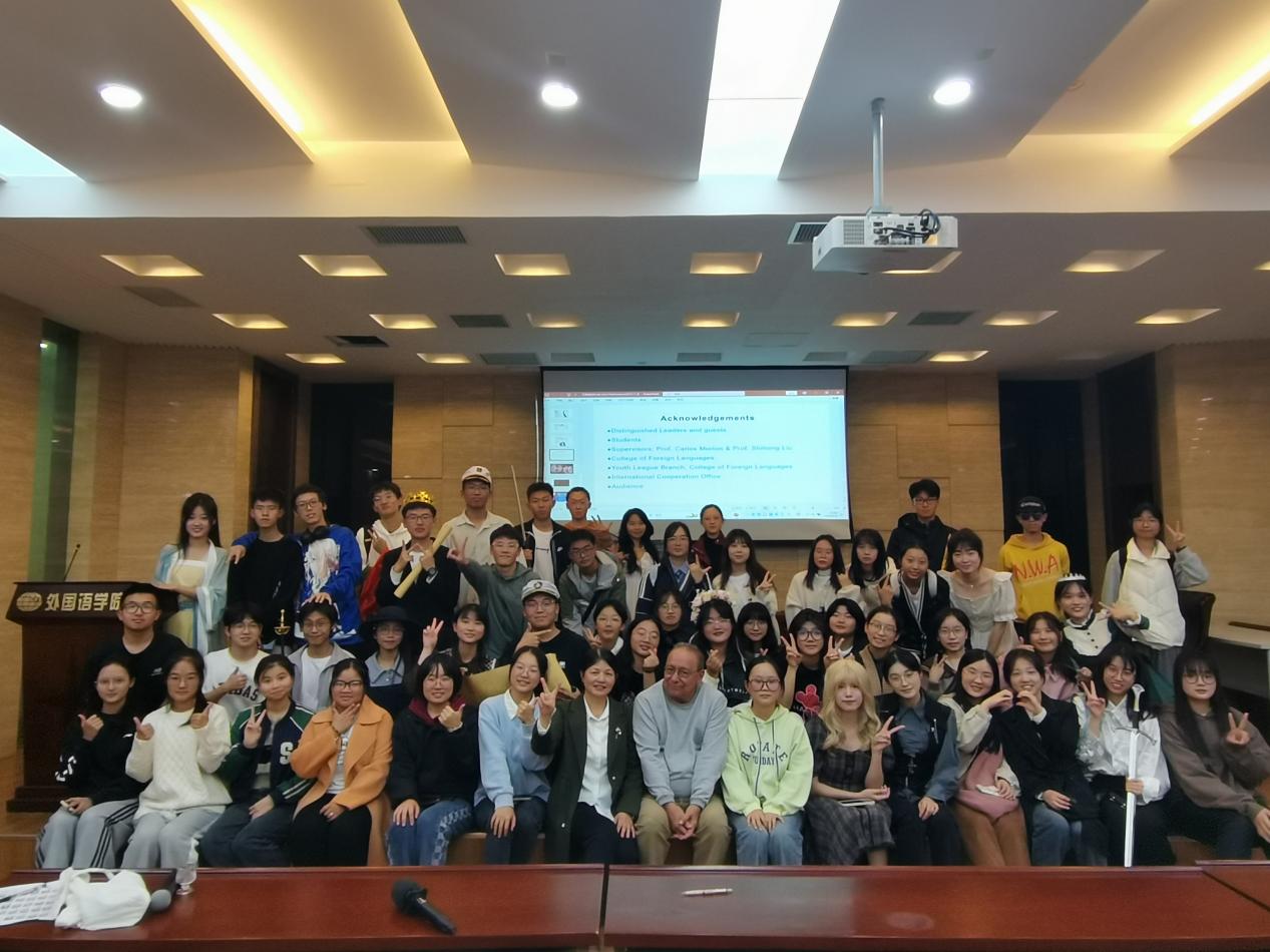 2023年11月8日晚,十三水在线 在国际会议中心成功举办了校通识课《英语戏剧》课程汇报演出。该课程由美国著名戏剧家、加州大学卡洛斯·莫顿(Carlos Morton)教授和十三水在线 副教授刘世红联合授课。通过该课程,学生系统学习了戏剧的发展史和理论知识,重点分析研究了英国最伟大的戏剧家莎士比亚的四部经典戏剧、并进行模仿和改编,最后将自己的改编作品搬上舞台。