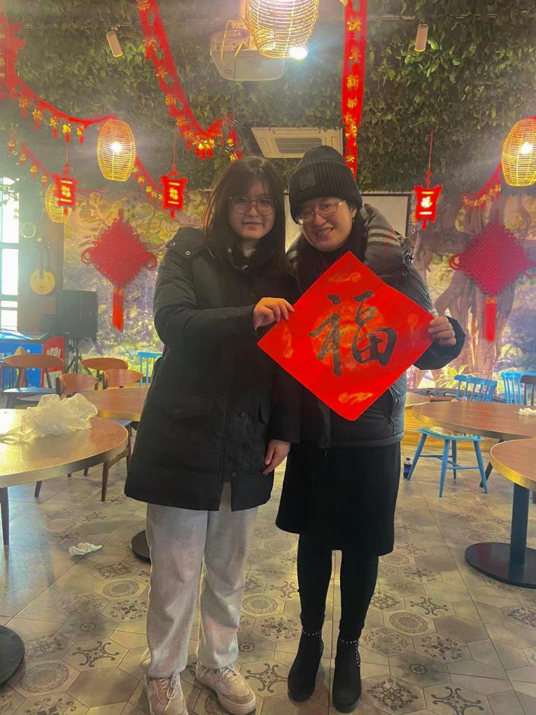 优良学风建设平台上勇攀学习高峰,师生共同写下寓意深刻的春联——“攀登必胜展宏图,同舟共进御长风”,象征着师生同心同向同行,承载了老师对同学们学习与生活更上一层楼的祝福。