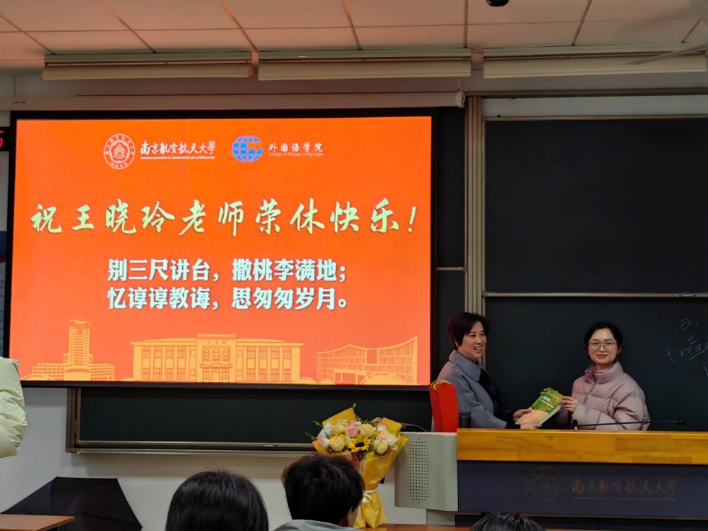 此外,开拓者奖助学金中有一项特别的奖学金,为“王晓玲老师特别奖”。今天也正值王晓玲老师执教生涯最后一课。临别之际,十三水app 教师代表及大二英语系的同学们共同为王晓玲老师举办了荣休仪式。别三尺讲台,撒桃李遍地,在36年执教生涯的最后,王晓玲老师表达了对英语专业教学的热忱、对英语学科发展的关注、对十三水app 的不舍。“Be more prosperous in your study and career!”道出了王老师对莘莘学子们的美好祝愿与殷切期望。